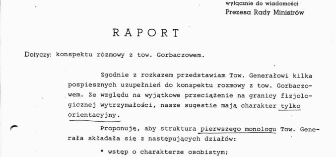 Sugestie zespołu Wiesława Górnickiego dla gen. Wojciecha Jaruzelskiego przed spotkaniem z Michaiłem Gorbaczowem 26 kwietnia 1985 r. w Warszawie przywódcy państw socjalistycznych przedłużyli ważność Układu Warszawskiego o kolejne 20 lat. Następnego dnia wybrany miesiąc wcześniej sekretarz generalny KPZR Michaił Gorbaczow spotkał się z gen. Wojciechem Jaruzelskim. Była to pierwsza zagraniczna wizyta radzieckiego przywódcy. Ekipa Jaruzelskiego rozumiała, że wraz z objęciem przez Gorbaczowa funkcji szefa partii nadchodzą zmiany, starała się więc wyjść