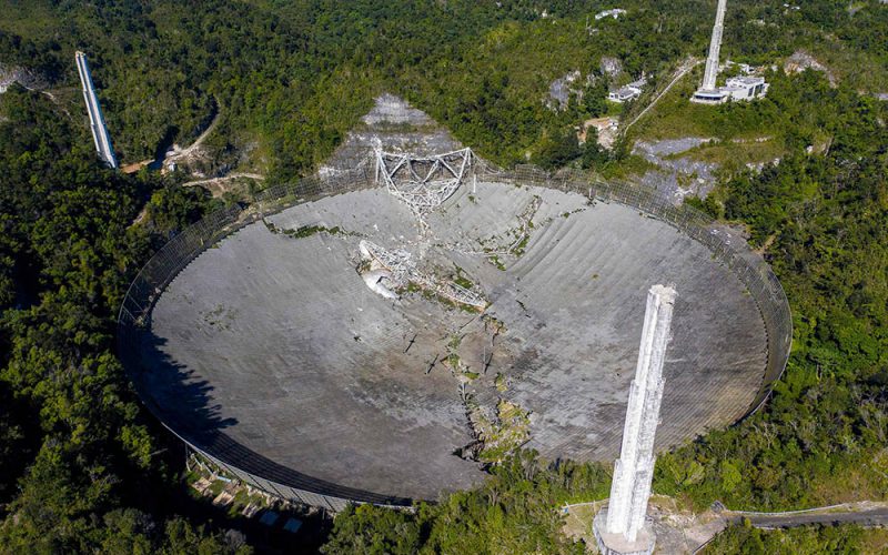 Zawalił się największy radioteleskop, ale są jeszcze potężniejsze i bardziej czułe Przeszło 300-metrowy radioteleskop Arecibo w Portoryko przestał istnieć 1 grudnia 2020 r. Już od pewnego czasu wykazywał oznaki słabości, więc katastrofa nie była wielkim zaskoczeniem i – co ważniejsze – nie pociągnęła ofiar w ludziach. A był to obiekt słynny, niemal legendarny, niegdyś odwiedzany przez wycieczki, przez długie lata największy radioteleskop na świecie. Dopiero w 2016 r. Chińczycy zbudowali potężniejsze urządzenie. Prawie 30 lat temu nasz radioastronom Aleksander Wolszczan zapoczątkował w tym miejscu odkrycia planet krążących wokół innych gwiazd niż Słońce, dzięki czemu niemal otarł się o Nobla. Wszyscy kinomani mogli zobaczyć tę imponującą konstrukcję także w kluczowej scenie filmu o Jamesie Bondzie „Golden Eye” i innych hollywoodzkich hitach. Teleskop, poza celami astronomicznymi, był również wykorzystywany przez wywiad Stanów Zjednoczonych do określania pozycji stacji radarowych ZSRR na podstawie sygnałów odbitych od Księżyca. A w 1974 r. przy jego pomocy wyemitowano w kierunku Gromady Herkulesa wiadomość skierowaną do potencjalnych obcych, którzy jednak nie odpowiedzieli. Wreszcie w 2008 r. radioteleskop Arecibo został wpisany na listę National Register of Historic Places. Kopuła nad czaszą Arecibo nie był młodzieńcem, zbudowano go w 1963 r. Już w sierpniu ub.r. zaobserwowano niepokojące objawy zmęczenia materiału. Urwał się wówczas jeden z kabli podtrzymujących metalową platformę znajdującą się nad radioteleskopem, powodując uszkodzenie jego ogromnej, 305-metrowej czaszy. Wtedy amerykańska National Science Foundation (NSF) zastanawiała się nad dalszymi losami urządzenia, bo jego ewentualna naprawa mogła się okazać zbyt ryzykowna dla ludzi. Fundacja rozpoczęła zatem opracowywanie planu likwidacji. Zakładał on zachowanie jak największej ilości pozostałej infrastruktury obserwatorium Arecibo, aby była ona wciąż dostępna dla przyszłych misji badawczych i edukacyjnych. Pomyślano nie tylko o naukowcach, którzy zajmowali się badaniami kosmosu, ale także o okolicznych mieszkańcach tego nienajbogatszego terytorium zależnego USA, którzy żyli z turystyki. Gdy przygotowywano już dostawę zapasowych kabli pomocniczych i kabli tymczasowych, 6 listopada pękł także główny kabel na podtrzymującej konstrukcję wieży. Na podstawie pomiarów naprężeń drugiego zerwanego kabla inżynierowie doszli do wniosku, że także pozostałe kable są prawdopodobnie słabsze, niż pierwotnie zakładano. Wielka i ciężka, ważąca 900 ton kopuła odbiornika (naukowcy nadali jej przydomek gregoriańska z uwagi na kształt), zawieszona na trzech grubych linach stalowych nad ogromną czaszą mogła budzić trwogę. I tak 1 grudnia o godz. 6.55 czasu lokalnego zaczęły się zrywać po kolei liny podtrzymujące konstrukcję. Wszystko spadło na dół, jeszcze bardziej niszcząc czaszę. Dodatkowo uszkodzeniu uległy dwie kolejne wieże, z których biegły kable podtrzymujące instalację odbiornika, a także budynki obserwatorium. Katastrofa została sfilmowana zarówno z dołu, jak i z góry, z kamery krążącego nad teleskopem drona, a oba kilkunastosekundowe filmy znalazły się w internecie. Trzeba się pożegnać z tym obserwatorium, które zapisało się w pamięci wielu polskich astronomów, i poszukać dla nich innego miejsca, z którego można nadawać i odbierać sygnały radiowe przychodzące z przestrzeni nie tylko okołoziemskiej, ale nawet z bardzo odległych galaktyk. Następcy Arecibo Gdzie się podzieją nasi naukowcy, którzy jako grupa stanowią dziś niemały i liczący się w świecie potencjał badawczy? Gdzie znajdą urządzenia i warunki atmosferyczne dogodne do badań nieba? Przecież nie w Polsce, gdzie atmosfera często jest zasnuta chmurami, mgłami i coraz gęstszym smogiem. Z tym pytaniem zwróciliśmy się do prof. Marka Sarny, prezesa Polskiego Towarzystwa Astronomicznego. – Na świecie jest podobne urządzenie, o wiele bardziej czułe. To Five hundred meter Aperture Spherical Telescope (FAST), czyli kopiujący ideę Arecibo 500-metrowy radioteleskop chiński. Pytanie, czy przyjmie on polskich radioastronomów z Torunia, Krakowa, Olsztyna? Istnieją jeszcze dwie świetne możliwości i polscy naukowcy już z nich korzystają. Jedną jest LOFAR – to kilkadziesiąt anten rozmieszczonych w kilku krajach europejskich. W Polsce mamy trzy z nich, ich koordynatorem jest prof. Andrzej Krankowski z Uniwersytetu Warmińsko-Mazurskiego. Drugim urządzeniem jest radioteleskop ALMA na pustyni Atacama w Chile, położony wysoko w górach (ponad 5000 m n.p.m.). Jest to system 66 anten zbierających sygnały w zakresie