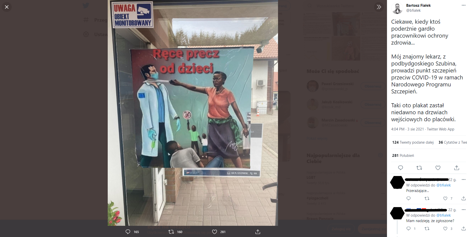 Tymczasem antyszczepionkowcy działają. Skrajnie prawicowe stowarzyszenie Bydgoskie Kamractwo Rodaków zaatakowało dyrektorkę domu dziecka w Aleksandrowie Kujawskim, bo „przymusowo szprycuje dzieci szczepionką”, a teraz ta sama grupa rozwiesza na gabinetach medyków groźby zabójstwa wobec lekarzy, którzy prowadzą szczepienia.