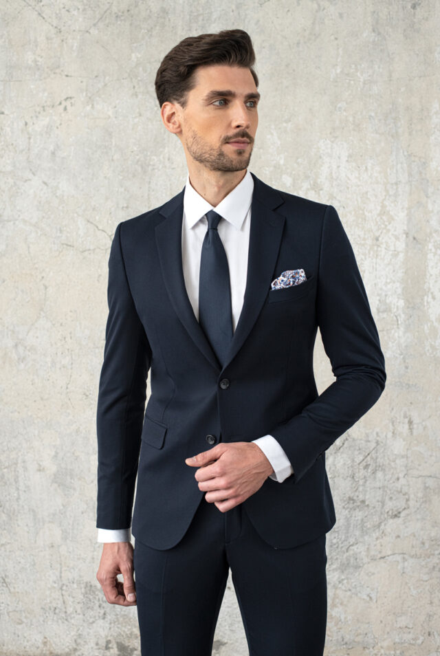 Naszą kolejną propozycją jest granatowa koszula w delikatny mikrowzór. Nadają się nie tylko na co dzień, ale także jako część bardziej smart casualowego stroju na wigilijną kolację. Połącz je z grafitowymi spodniami garniturowymi lub chinosami w stonowanej kolorystyce.