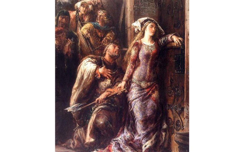 Podobno Jadwiga, przyszła święta, zagrożona związkiem z Jagiełłą, skonsumowała kontrakt małżeński z młodym Wilhelmem Habsburgiem Confessio To jasne: zakochałem się w tej pięknej truposzce, w tej najpiękniejszej może z polskich truposzek. I nic mnie nie obchodzi, że to nekrofilia (wprawdzie nekrofilia mistyczna, ale zawsze przecież nekrofilia). (…) Nie ja jeden, nie ja pierwszy. Czytam przecież tę fascynację u Jasienicy, w jego zapisie z ekshumacji królowej, i w jego portrecie, jakże feerycznym i jakże namiętnym, jej osobowości. Czytam ją w szkicu czaszki, jaki wykonał Jan Matejko 22 stycznia 1887 r. Czytam ją w żałobnej mowie jej kapelana i spowiednika Stanisława ze Skarbimierza (Skalbmierza), pierwszego rektora odnowionego jej staraniem uniwersytetu (…). Czytam ją w tym kamieniarskim ciosaniu „stopki królowej”, dziele XIV-wiecznego rzemieślnika na zewnętrznym murze krakowskiego kościoła karmelitów trzewiczkowych na Piasku. I wspominam, jak któregoś grudniowego wieczora Dymitr Szewionkow-Kismiełow, moskiewski grafik z Krakowa, instruował mnie z przejęciem: „Jak – o, tutaj – włożysz palec przez kratę, to wymacasz kształt dużego paluszka jej stópki”. (…) Pierwszy dramat ciała „Postanowiono, że 34-letni Jagiełło zostanie mężem 11-letniej Jadwigi” (Paweł Jasienica, „Myśli o dawnej Polsce”). Drugi dramat ciała Jest taki obraz Matejki z 1881 r.: „Dymitr z Goraja wstrzymujący drzwi na zamku w Krakowie”, który pokazuje tę sprawę od innej (?) strony. O co chodzi w tym narodowo-erotycznym dziele? „Uwielbiany przez Matejkę Długosz powiada, że Jadwiga, zagrożona związkiem z Jagiełłą, zdecydowała się na brawurowy wyczyn, a mianowicie na skonsumowanie kontraktu małżeńskiego zawartego wcześniej z młodym Wilhelmem Habsburgiem, który – wyrzucony z Wawelu – pomieszkiwał sobie na mieście. »A gdy wrota zamkowe z rozkazu panów przed nią zawarto – pisze Długosz – porwawszy siekierę, którą jej słudzy podali, własną ręką usiłowała je wyrąbać«. Szczęściem podskarbi Dymitr z Goraja potrafił jej wyperswadować niewczesny pomysł. I co widać na obrazie? Ano właśnie to. Pozostaje szkolne pytanie: »co artysta chciał przez to powiedzieć?«. Zapewne był po stronie Dymitra, bo gdyby nie jego interwencja, ślub Jadwigi z Jagiełłą nie doszedłby do skutku i nie byłoby komu wygrać grunwaldzkiej batalii. (…) Sprawa jest o tyle złożona, że Długosz w innym miejscu wspomina, iż nie dość, że Jadwiga w towarzystwie austriackiego księcia uczestniczyła w rozmaitych tańcach i zabawach, to jeszcze przed próbą wyłamania bramy – pragnęła »uzupełnić sprawę małżeńską«. Karol Szajnocha, którego »Jadwigę i Jagiełłę« Matejko z pewnością czytał […] skrupulatnie odnotowuje opinie historyków utrzymujących, że Jadwidze udało się jednak »uzupełnić« to, co trzeba. Może więc na obrazie Matejki dziewczyna pragnie wyłamać drzwi, aby zrobić to po raz drugi? Jak było naprawdę, nie dowiemy się nigdy, jednakże nie ma wątpliwości, że malarz stawia przyszłą świętą w dość dwuznacznym świetle” (Jarosław Krawczyk, „Jan Matejko. Mistrz legendy św. Stanisława”). Wydarzenia stojące u podstaw tego dramatu zaczynają snuć się niemal zaraz po przyjściu Jadwigi na świat, co nastąpiło gdzieś pomiędzy 3 października 1373 r. a 18 lutego 1374 r. w stołecznej Budzie. Była ona trzecią córką Ludwika Wielkiego (Węgierskiego) oraz jego drugiej żony Elżbiety Bośniaczki, słynącej z urody. Jak mówi hagiograf, „nad kołyską Jadwigi nie było radości”, ponieważ Ludwik oczekiwał syna, upragnionego następcy tronu. „Mimo to 18 sierpnia 1374 r. arcyksiążę austriacki Leopold III Habsburg zwrócił się do Ludwika z prośbą o połączenie symbolicznym związkiem małżeńskim półrocznej Jadwigi i swojego najstarszego syna Wilhelma, wówczas czteroletniego. W potwierdzeniu z 4 marca 1375 r. Ludwik przystał na ten projekt. Trzy lata później w pogranicznym – od strony austriackiej – Hainburgu (niedaleko Bratysławy, położonej na drugim brzegu Dunaju) odbyło się uroczyste spotkanie dworów austriackiego i węgierskiego. Aktu »wstępnych« zaślubin, zwanych sponsalia de futuro, dokonał 15 czerwca 1378 r. arcybiskup ostrzyhomski Dymitr. Potem na zamku przeprowadzono zwyczajowe dopełnienie obrzędu, czyli tzw. pokładziny, polegające na tym, że czteroletnia Jadwiga i ośmioletni Wilhelm spali przez dwa tygodnie w jednym łóżku. Równocześnie rodzice obu stron zobowiązali się wypłacić »młodej parze« po 200 tys. florenów do dnia 23 kwietnia 1384 r. W Hainburgu postanowiono, że Jadwiga wyjedzie na dwór wiedeński. W swoim nowym domu miała wrosnąć w tradycje i atmosferę habsburskiego państwa –
