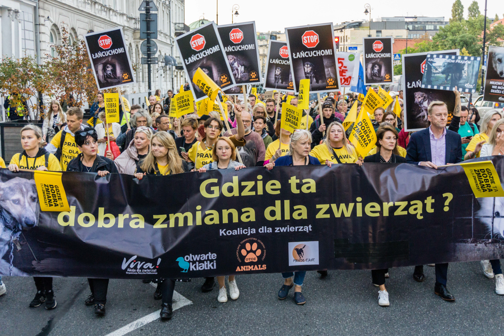 Ponad 2 tysiące Polek i Polaków przeszło ulicami Warszawy pod Ministerstwo Rolnictwa i Sejm, aby zapytać rządzących „gdzie ta dobra zmiana dla zwierząt”. W tłumie pojawili się posłowie i posłanki (m.in Małgorzata Tracz, Katarzyna Piekarska, Hanna Gil Piątek i Paweł Suski) oraz przedstawiciele największych organizacji prozwierzęcych, m.in. mec. Katarzyna Topczewska oraz dyrektor poznańskiego ZOO Ewa Zgrabczyńska. Po co? Wkrótce minie rok od momentu kiedy „Piątka dla zwierząt” została zamrożona przez Prawo i Sprawiedliwość, a zwierzęta nadal cierpią.