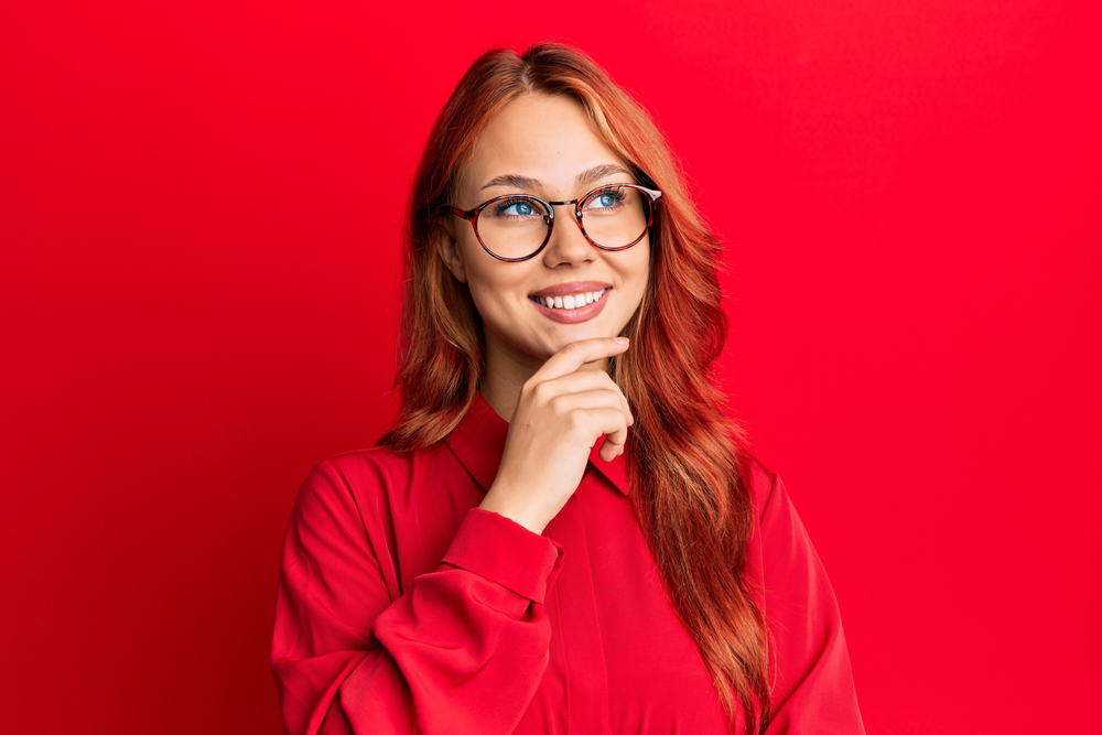 Czerwone okulary najbardziej przyciągają wzrok innych. Są bardzo odważne i zdecydowane. Często zakładają je osoby mające artystyczną duszę, chcące podkreślić swoją niezależność i pewność siebie. Najlepiej kontrastują z kruczoczarnymi włosami i karminową szminką.