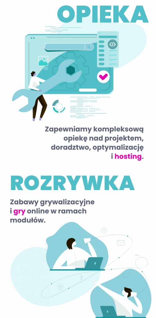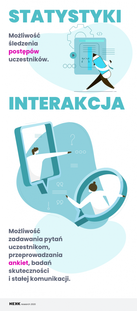 Kiedy podczas pandemii praca przedstawicieli medycznych i farmaceutycznych została mocno ograniczona, pojawiła się silniejsza potrzeba bezpośredniego kontaktu z tymi grupami poprzez działania digitalowe. Połączenie prezentacji produktowej (w ciekawej dla odbiorcy formie) z mechaniką konkursową (benefity rzeczowe) oraz wsparcie platformy promocją adresowaną do konkretnych grup docelowych stało się alternatywą dla wizyt przedstawicieli farmaceutycznych. Dzięki online’owej formie edukacji nie musimy się martwić o różnego rodzaju ograniczenia wynikające z aktualnej sytuacji epidemicznej, dostępności naszej grupy docelowej, a dodatkowo dostarczamy możliwość rozwoju oraz uzyskania benefitów w dowolnym dla użytkownika miejscu i czasie.