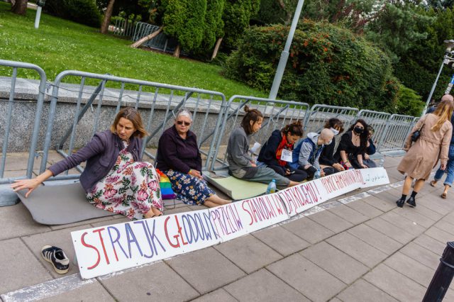 Grupa młodych osób rozstawiła namioty na schodach Urzędu Wojewódzkiego we Wrocławiu, przywiązała się łańcuchem do balustrady i ogłosiła, że nie odejdą, póki Afgańczykom w Usnarzu nie zostanie udzielona pomoc. Podobna jest w Warszawie. Pod Sejmem feministyczny kolektyw Wilczyce ogłosił strajk głodowy. „Próby bezpośredniego udzielenia pomocy są stale uniemożliwiane, blokowane przez służby, dlatego zdecydowałyśmy się na formę strajku głodowego” – mówią Wilczyce.