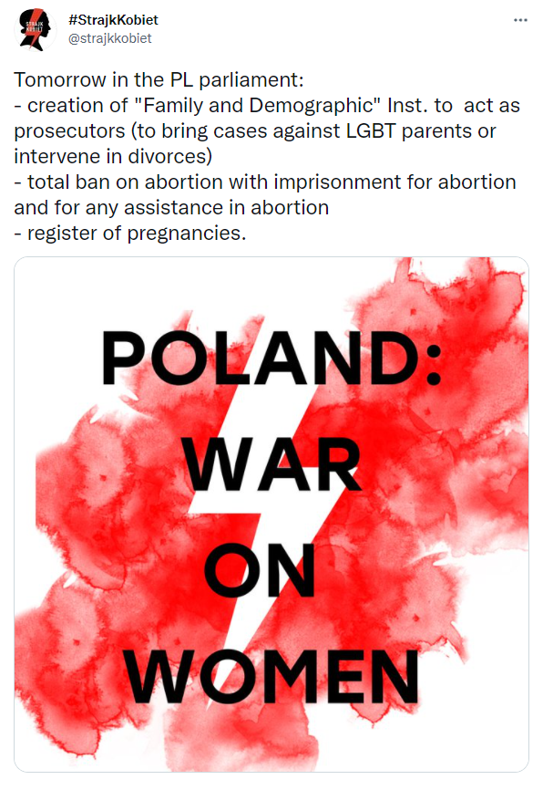 1 grudnia kobiety znów wyszły na ulice. Tym razem do protestu zmusił je projekt „Stop aborcji”, którego pierwsze czytanie znalazło się w porządku obrad Sejmu, a także pomysł Ministerstwa Zdrowia, by stworzyć tzw. rejestr ciąż – listę wszystkich Polek w ciąży. To jednak nie koniec niespodzianek. Rząd chce także stworzyć Polski Instytut Rodziny i Demografii, z posłem PiS Bartłomiejem Wróblewskim na czele. „Dziw, że pisowskie biuro demografii nie zostało nazwane wprost: »Instytut Kontroli Rozrodczości i Macic«”, pisze Ogólnopolski Strajk Kobiet na swoim Facebooku.