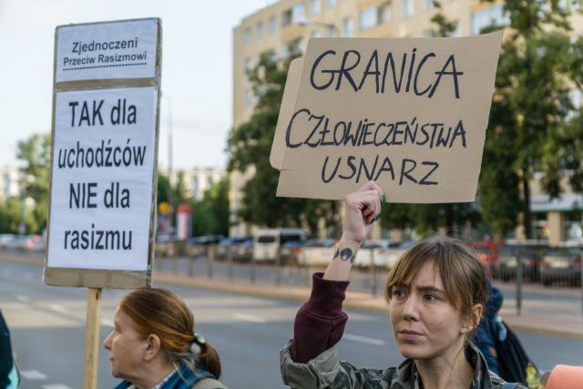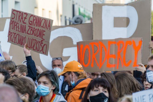 Pod Komendą Główną Straży Granicznej w Warszawie odbyła się 25.08. manifestacja solidarnościowa z uchodźcami przetrzymywanymi od kilkunastu dni na granicy polsko-białoruskiej. Słowa napisane przez poszkodowanych „We are dying, please help us”, stały się głównym hasłem wydarzenia.