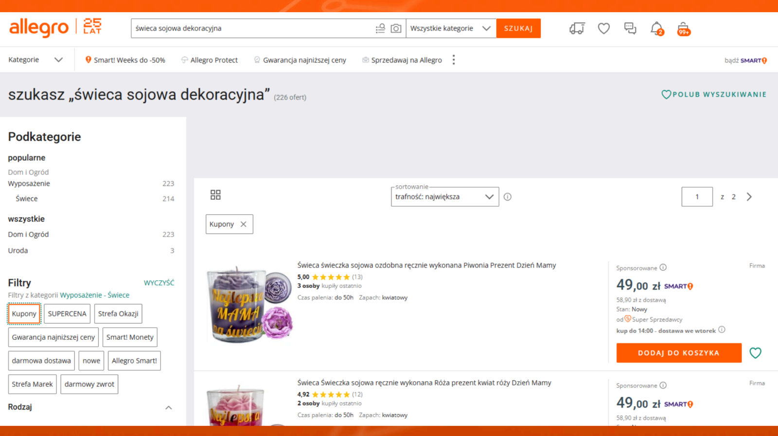 - Kuponach rabatowych i monetach Allegro – choć nie są widoczne w listingach, klienci mogą filtrować oferty według tych promocji, co przyciąga ich uwagę.