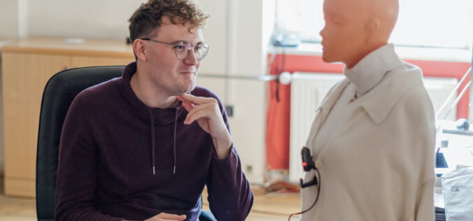 – Na pierwszym roku pielęgniarstwa studenci mają zajęcia na fantomach plastikowych. Taki fantom nie ma możliwości nawiązania kontaktu ze studentem, bo nie mówi, nie może wyrazić zgody na zabiegi lub się sprzeciwić. Pomyślałem: a co by było, gdyby dać mu wzrok, umiejętność mowy, możliwość zbuntowania się? Wtedy student musiałby znaleźć nić porozumienia z pacjentem, umieć się skomunikować. Szczególnie trudne jest to w przypadku chorych z demencją, którzy czują niechęć do zmian, często nie chcą się poddawać koniecznym zabiegom. Chodzi o to, żeby studenci, kończąc studia i idąc do szpitala, już mieli pojęcie, jak rozmawiać z pacjentem. Dlatego stworzyłem panią Stefanię. Do jej zbudowania użyłem zwykłego manekina.