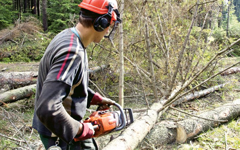 PHOTO: PRZEMYSLAW ZIEMACKI/EAST NEWS Z ZYCIA PARKU NARODOWEGO N/Z OCHRONA CZYNNA W PARKU NARODOWYM GOR STOLOWYCH, DRWAL SWIADCZACY USLUGI NA RZECZ PARKU WYCINA SWIERKI ZASIEDLONE PRZEZ KORNIKA DRUKARZA