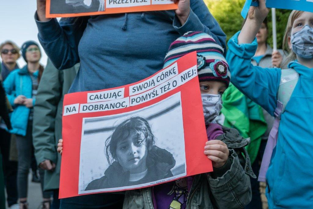 „Rodziny z dziećmi utknęły w sytuacji bez wyjścia”, czytamy na plakacie. „Nie mogą wrócić na Białoruś. Nie mogą przekroczyć granicy Unii. Temperatura w lesie już spada poniżej zera. Nie skazujmy ich na śmierć! Zgodnie z Konwencją o prawach dziecka rząd polski jest zobligowany do przyjęcia i rozpatrzenia ich wniosków o azyl. Siłowe wypchnięcia poza granicę Polski przez Straż Graniczną są nielegalne”.