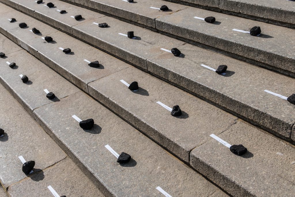 9 marca o godz. 10 na schodach prowadzących do głównego wejścia Pałacu Kultury i Nauki w Warszawie pojawiło się 61 kawałków węgla podpisanych nazwiskami radnych Miasta Stołecznego Warszawy. Czy to happening? Nie. To konferencja ruchu miejskiego Miasto Jest Nasze oraz Client Earth.