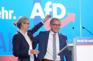 Prawicowo-nacjonalistyczna Alternatywa dla Niemiec jest od miesięcy na fali wznoszącej. I nic nie zapowiada, aby ten trend szybko się odwrócił Jednooki kanclerz Olaf Scholz? To żadna satyra, tylko na początku września lustro politycznej rzeczywistości Niemiec. Szef rządu z ramienia socjaldemokratycznej SPD wskutek upadku podczas rekreacyjnego biegania zranił się w twarz i przez kolejne dni nosił na prawym oku czarną opaskę. [...]