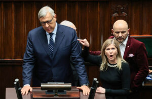 Przyboczna prezesa, posłanka Iwona Arent w sprawach moralnych pogubiła się zupełnie Przez Warmię i Mazury, które w Sejmie reprezentuje Iwona Arent, przetacza się głębokie westchnienie zażenowania i wstydu wsparte komentarzami w stylu: „Już zapomniała, jak jej synek zmaltretował dziewczynę?”. W każdym razie posłanka PiS po raz kolejny strzeliła sobie w kolano. Choć mogła pozostawić po sobie wspomnienie w miarę pożytecznej parlamentarzystki, przylgnie do niej opinia impulsywnej, ale i niezbyt rozgarniętej kobiety uprawiającej trudną sztukę polityki. Ale może takie właśnie gotowe na wszystko towarzyszki są potrzebne prezesowi? Złaź, morderco! Kiedy 2 kwietnia Roman Giertych wszedł na mównicę sejmową, by bronić się przed atakiem Jarosława Kaczyńskiego, który nazwał go sadystą, został otoczony przez grupę posłów PiS. Jako jedna z pierwszych przybiegła Iwona Arent. Z obłędem w oczach, wskazując Giertycha palcem, po trzykroć krzyknęła: „Złaź, morderco!”. Zaraz dołączył do niej cały pisowski chór, wołając: „Morderca, morderca!”. Miało to być napiętnowanie posła KO za jego udział w rzekomym doprowadzeniu do śmierci Barbary Skrzypek, która jako świadek zeznawała w śledztwie dotyczącym tzw. dwóch wież, czyli planowanej przez Kaczyńskiego inwestycji w stolicy. Giertych to jeden z [...]